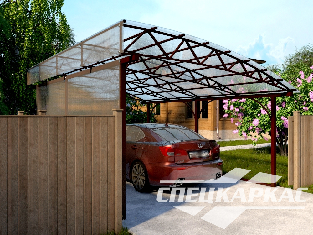 Утолщенные столбы-опоры 80*80 мм, забетонированные на глубине от 1,5м, придают металлоконструкции дополнительную устойчивость, которую не пошатнет даже ураган. Цельносварная стропильная ферма способна выдержать длительную сильную нагрузку, что придает конструкции надежность. Кровля навеса «Грем» выполнена из экологичного и пожаробезопасного поликарбоната. Материал устойчив к воздействиям химикатов, защищает транспорт от воздействия ультрафиолета, выдерживает жару и заморозки без потери эксплуатационных характеристик. Срок службы при правильном уходе – до 20 лет.